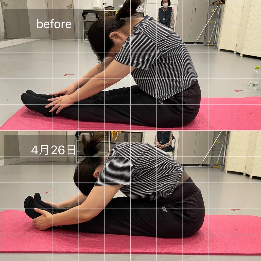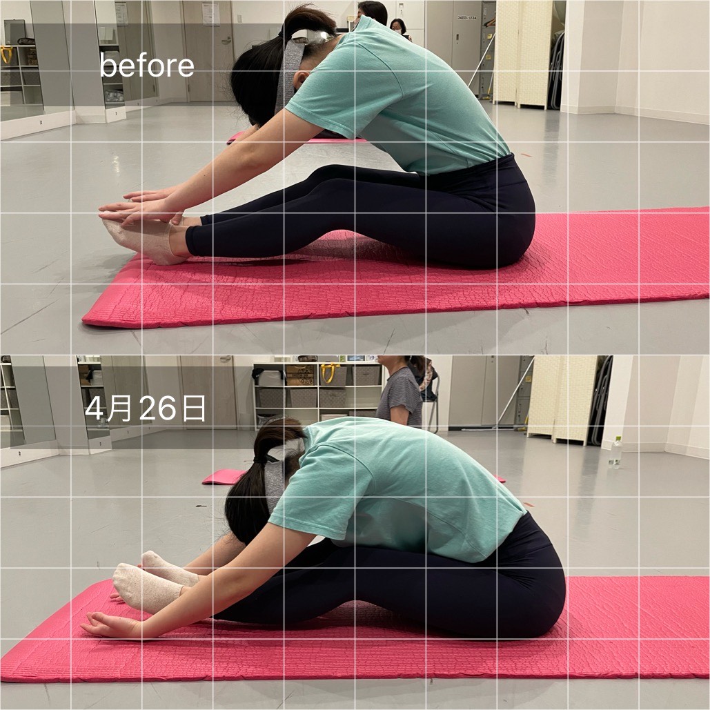 最近、目標を持つ為と、客観的に見ることによってより意識を高めていただく為に、記録を撮り始めて、この写真は、1回のレッスンの変化です!